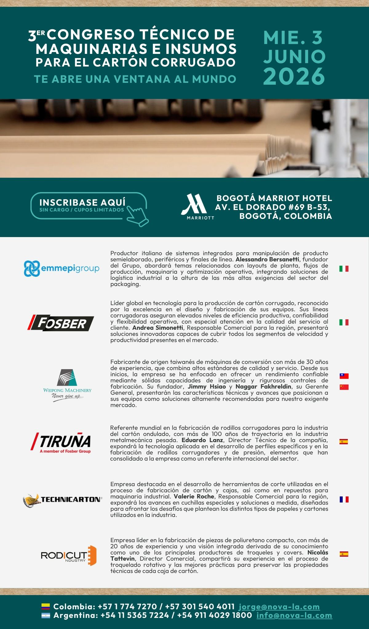 Regístrese para el Congreso Técnico que se llevará a cabo en Bogotá, Colombia el próximo 3 de junio 2026. Complete todos los campos para asegurar su participación.